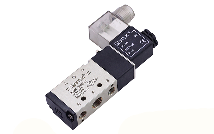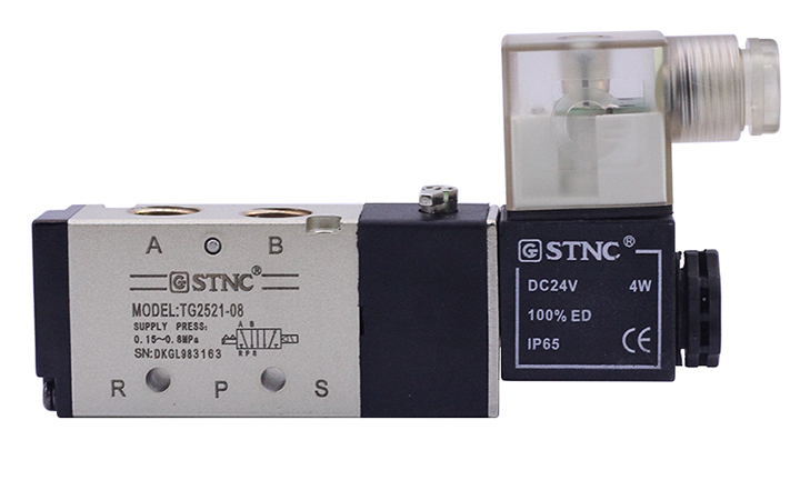 Van Điện Từ Khí Nén STNC TG2521-08 là loại van kích hoạt bằng điện, gồm có 1 đầu điện, 5 cửa và 2 vị trí. 2 cửa nằm phía trên và 3 cửa nằm phía dưới. Mặt trên của chiếc van gồm 2 cửa là 2 cửa (Out), khí thoát ra ngoài qua 2 cửa này đến kích hoạt xy lanh hoạt động. Với kết cấu vô cùng đơn giản 1 đầu điện và 1 thân van. TG 2521-08 thực hiện đầy đủ các chức năng đóng mở điều khiển, cung cấp khí nén cho các loại xi lanh, bộ lọc hoạt động ổn định và năng suất.