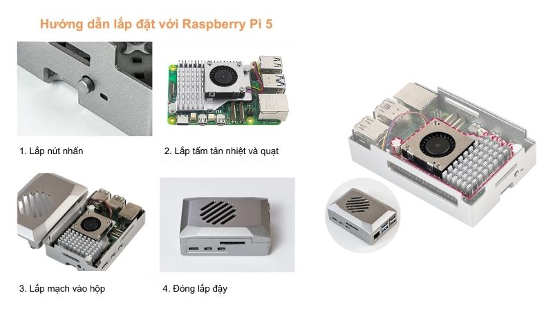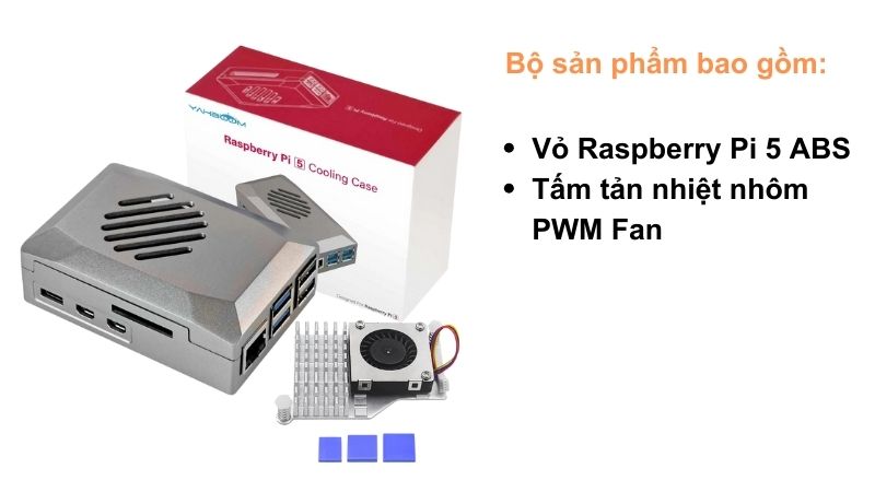 Lưu ý: Sản phẩm chỉ bao gồm vỏ case, tản nhiệt và quạt. Raspberry Pi 5 và các phụ kiện khác không được bao gồm.